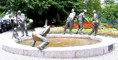 Wie der Name schon sagt, finden sich an diesem Brunnen verschiedene Puppenfiguren,